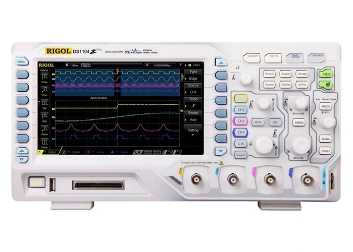 Цифровой осциллограф DS1104Z Plus имеет отличные технические характеристики и широкие функциональные возможности, необходимые для исследования и отладки электронных схем. В цифровом осциллографе DS1104Z Plus применена инновационная технология UltraVision, что обеспечило высокую скорость захвата осциллограмм, большую глубину записи, а также удобную навигацию по захваченному сигналу. Возможность синхронизации и декодирования сигналов последовательных шин позволяет использовать этот прибор для разработки и анализа встраиваемых систем, а опциональный 16-канальный логический анализатор позволит исследовать схемы со смешанными сигналами.